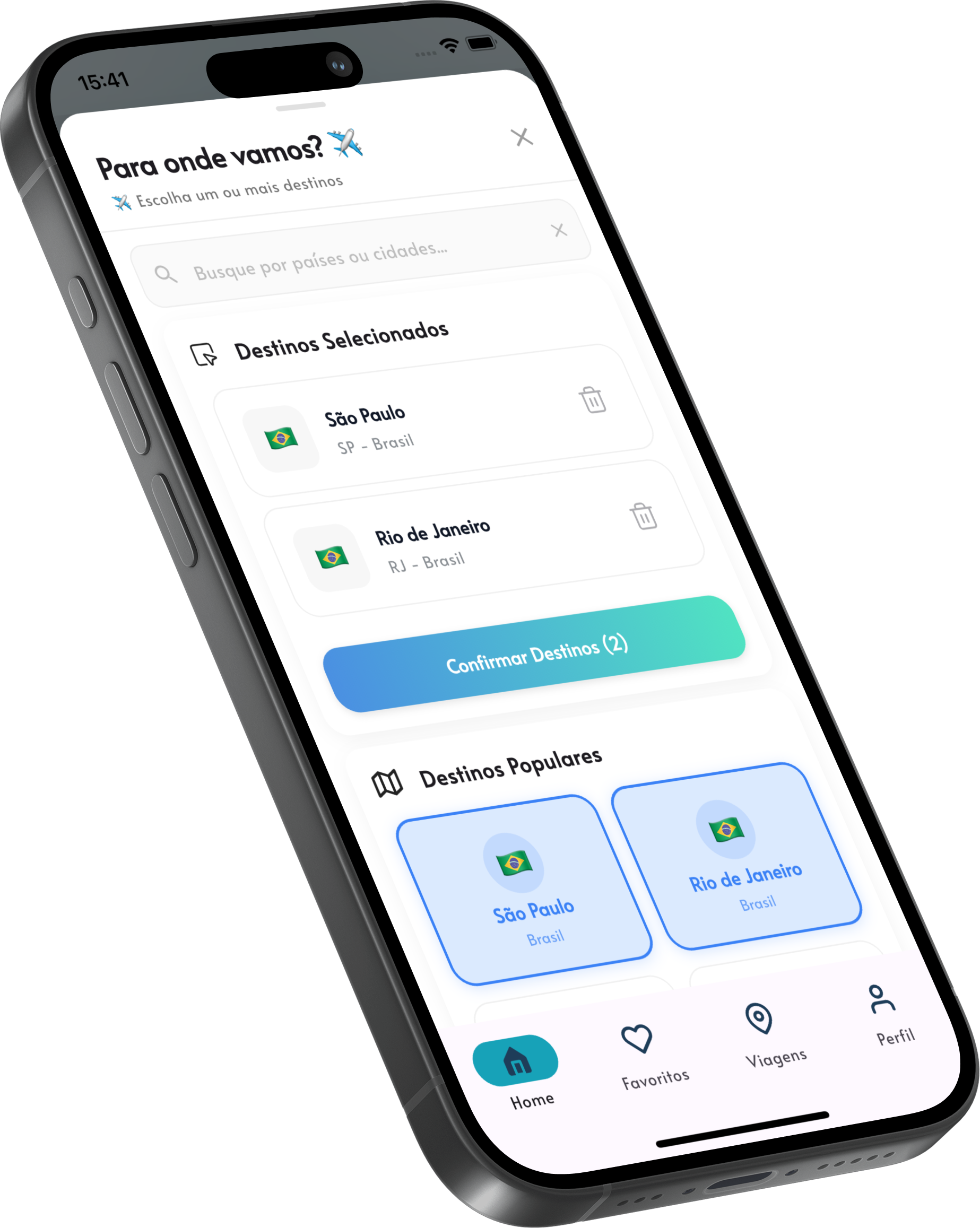 Organize sua viagem do início ao fim. Desde a escolha do seu destino ao último dia de aventura, com planejamento inteligente e controle total do seu orçamento e atividades.